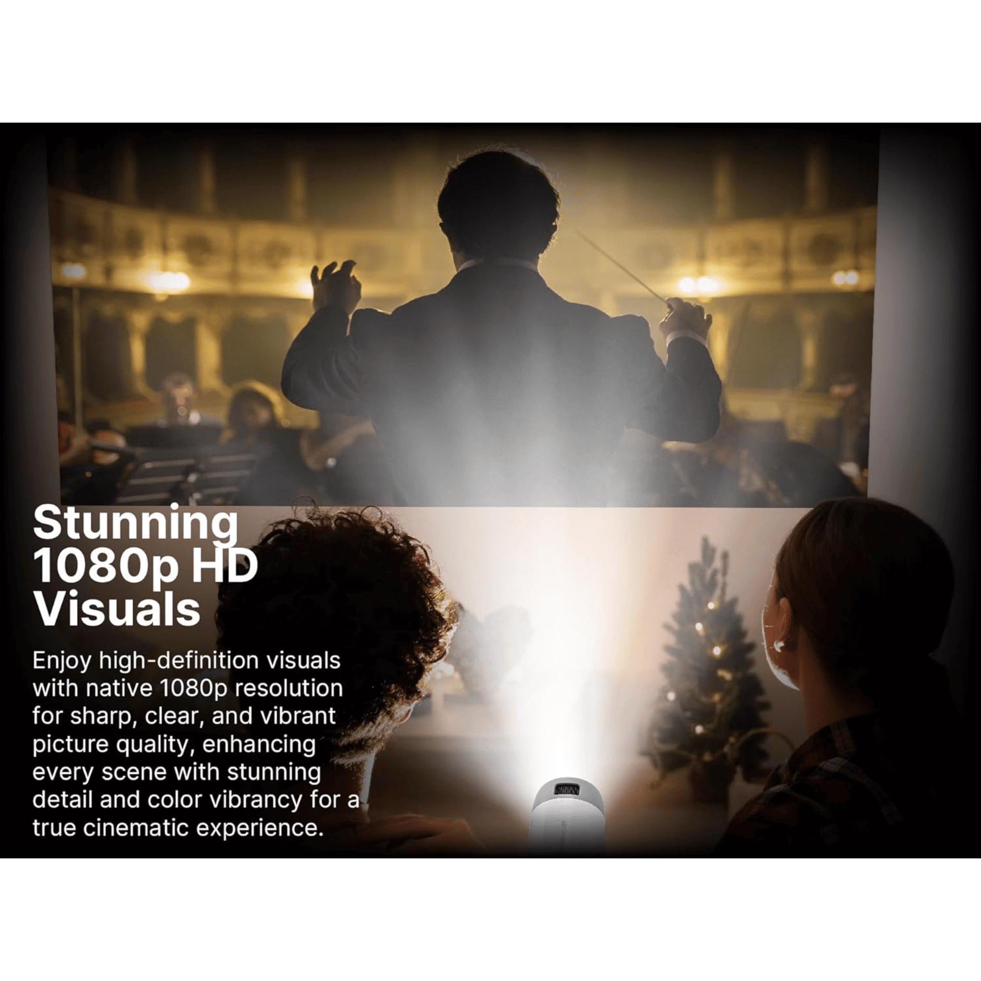 - Vivid Visuals: Stunning 1080p HD Visuals: Experience sharp, high-resolution imagery with native 1080p projection for an immersive viewing experience