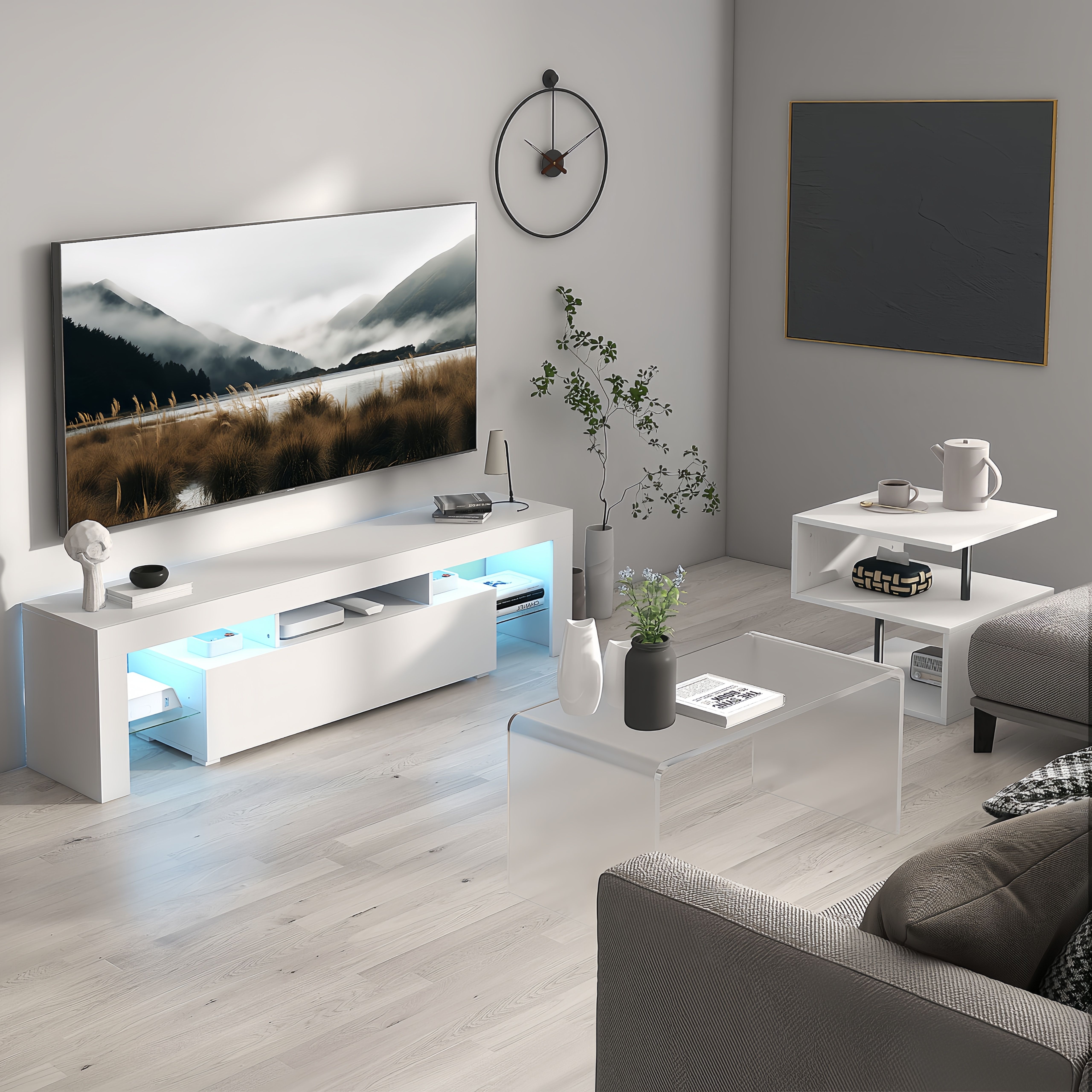 [Modern LED TV Stand]This LED TV stand features built-in LED lights,You can use the remote control to adjust the color and brightness of the light.16 light colors and 4 light changing modes.