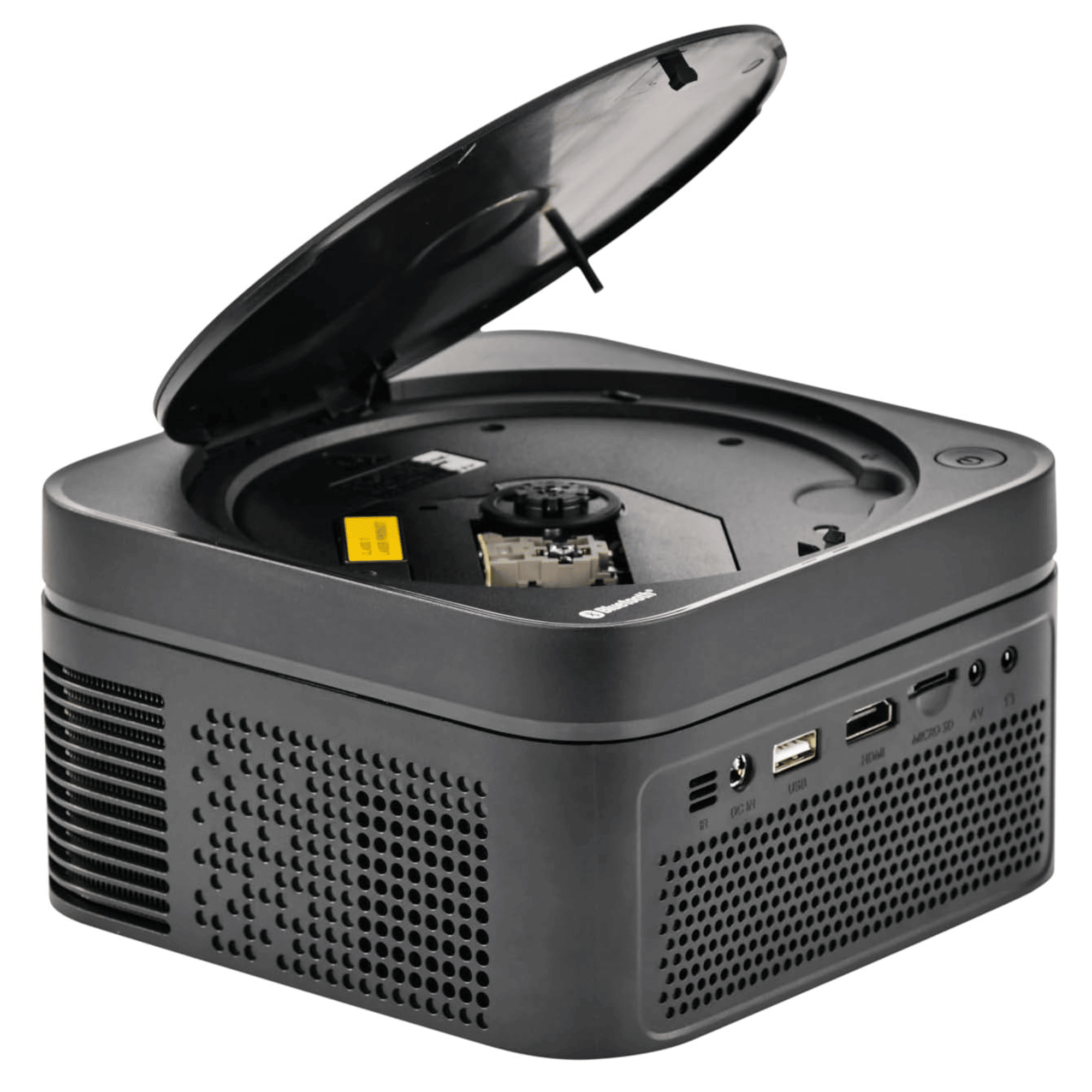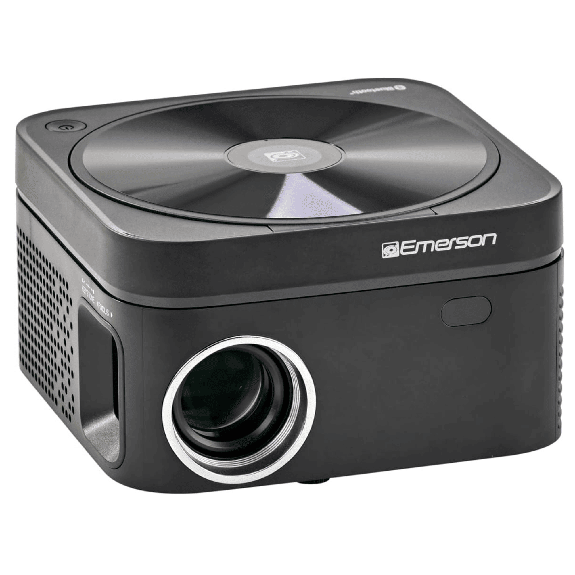 The Emerson Projector with DVD Player combines the power of an LCD projector with the convenience of multimedia playback in one sleek device. With a 720P native resolution and up to 100 Ansi Lumens brightness, enjoy crystal-clear images on large screens from 32" to 120". Stream media through a variety of sources, including USB flash drives, Micro SD cards, HDMI, or AV IN, or connect your favorite streaming devices such as Roku, Amazon Fire Stick, or Google Chrome Stick (devices sold separately). The built-in speakers provide great sound, while the 30,000-hour LED bulb ensures long-lasting performance. Control the projector from the comfort of your couch with the included remote control. Whether you're watching movies, playing games, or enjoying your favorite shows, this projector offers a versatile and immersive experience for all your entertainment needs.