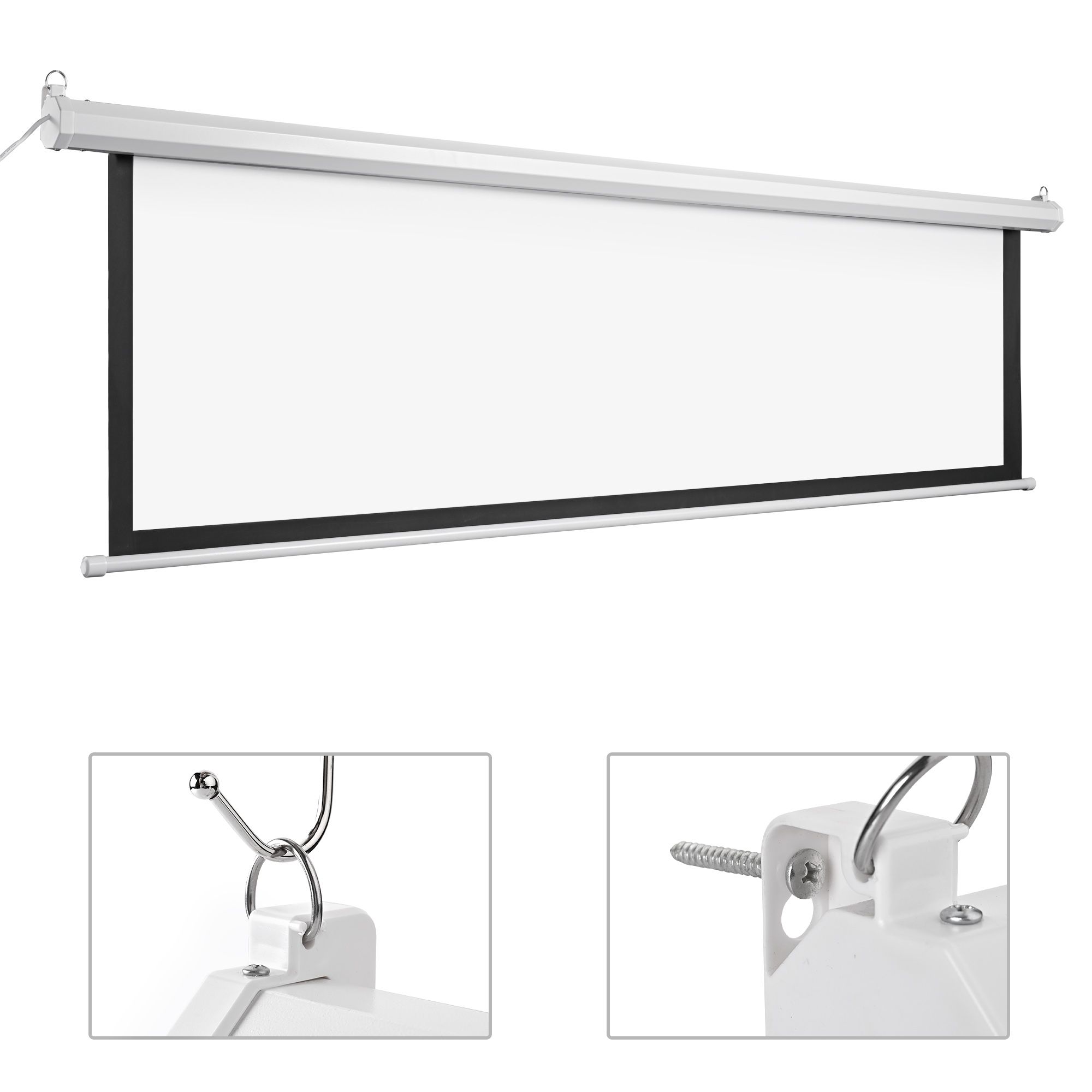 Wall & Celling Mount - 92" diagonal, 16:9 Electric Motorized Projector Screen, can be remote controlled to roll up or down to enjoy visual fun at ease, and retracted into the casing without taking up much space when not used, perfect for home theater movies projection and business presentation